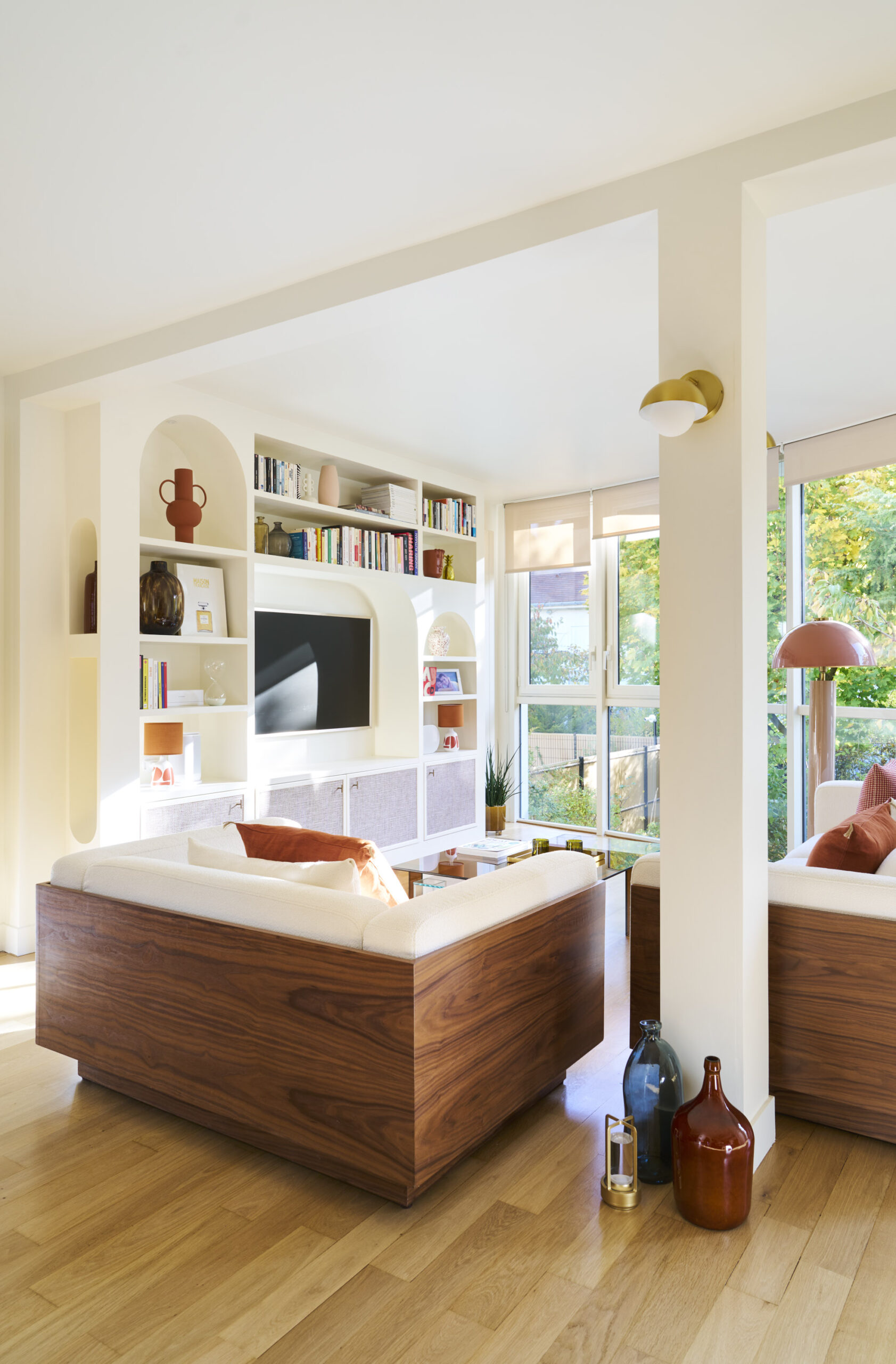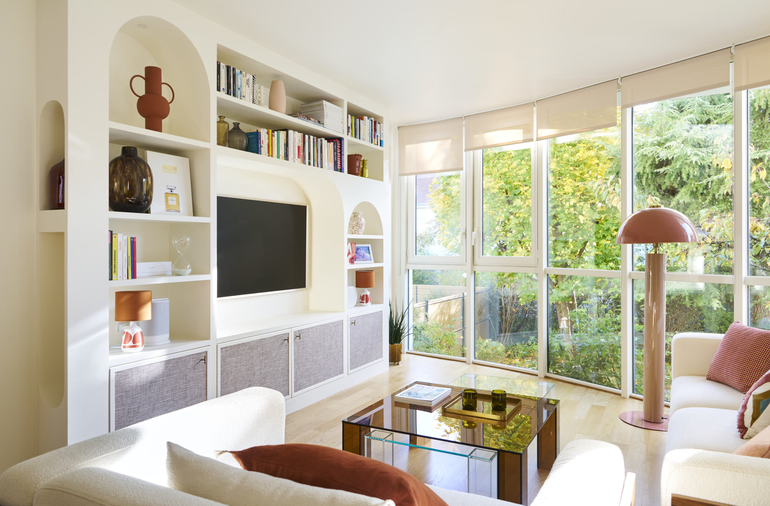 Baignée de lumière par sa verrière contemporaine mais figée dans une déco datée, cette maison avait besoin d’harmonie. Studio PK ouvre les perspectives et apporte modernité, douceur et personnalité pour révéler un intérieur haut en couleur et tout en rondeur.